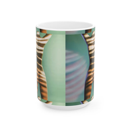 Abstract Nude Zebra Stripes Ceramic Mug — Modern Green Art Coffee Cup (11oz/15oz)